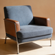 Blue Fabric & Brown Leather Accent Chair - Modern Armchair with Stainless Steel Frame for Living Room