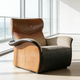 - Material: Gradient houndstooth fabric, top-grain leather, solid wood base